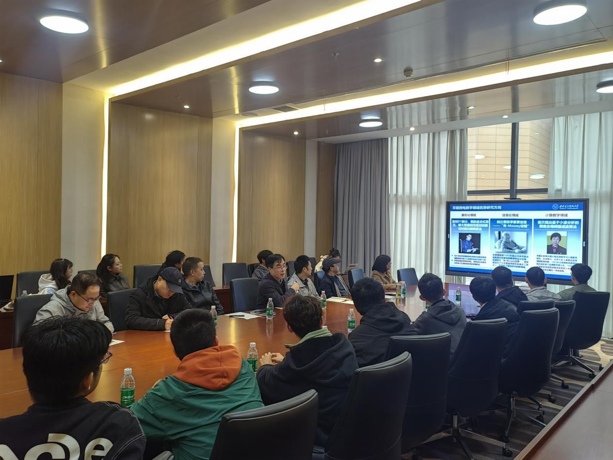 随后,董灏教授带来了题为“中国古代数学与近代数学,从辉煌到复兴的数学之旅”的报告,为同学们筑牢数学自信。他从古人对数字的表达逻辑切入,用生动的案例展现了中国古代数学的智慧与独特魅力,还细致分析了中国古代数学的核心特点、与西方数学的差异,以及自成体系的方法论。报告中,他重点讲述了中国计算数学学派的崛起与成就,最后为同学们清晰指明了数学学习的方向,寄予了深切期望。大三优秀学长尹得锟也分享了暑假期间赴香港大学访学的宝贵经历。他介绍,此次访学聚焦数学与金融等跨学科主题,采用“理论讲授——案例分析——小组展示——人文参访”的立体化模式,不仅让他收获满满,也深度体验了香港的独特文化。学长从课程学习、科研交流、文化适应三个维度,细致分享了自己的访学感悟:既介绍了香港高校浓厚的学术氛围和高效的学习方法,也给新生们提供了参与校外交流项目的实用建议,让大家对“如何利用资源提升自己”有了更具体的认知。