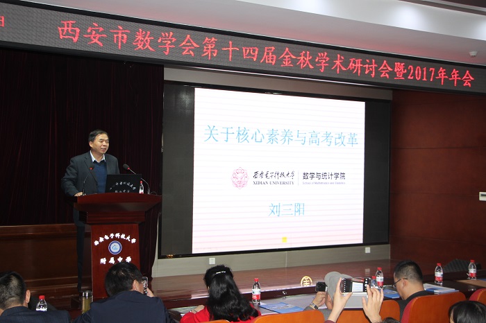 西安市数学会2017年金秋学术研讨会于10月18日在PA视讯平台附属中学召开。西安市数学会理事长、公司经理刘三阳教授作了《核心素养与高考改革》的学术报告。此次会议由PA视讯平台附属中学吴恒副董事长主持。