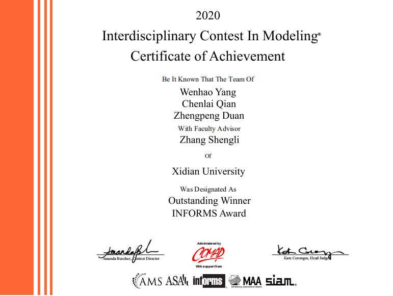 2020年西电国际数学建模竞赛特等奖及特等奖提名