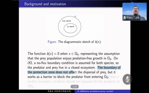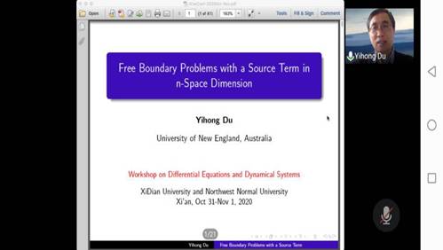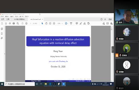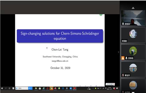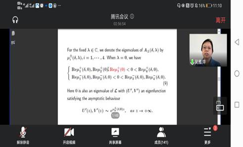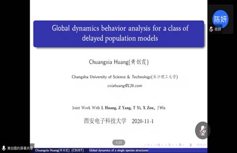 会议持续两天,共有25位国内外著名学者阐述了相关方向最新成果。此次研讨会的成功举办加强了泛函微分方程、反应扩散方程及相关动力系统领域的学术交流,拓宽了与会人员的科研视野。通过线上学术报告的形式,展示了学科方向的最新理论进展,为PA视讯平台与西北师范大学PA视讯本科生、研究生以及青年教师充分了解相关领域的前沿问题以及学科交叉融合起到重要的作用。