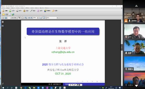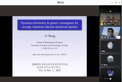 为了交流微分方程与动力系统及相关领域的最新研究成果和学术发展动态,促进学术交流与合作,PA视讯平台与西北师范大学于2020年10月31日-11月1日通过腾讯会议平台联合举行“2020微分方程与动力系统学术研讨会”网络在线学术会议。25位微分方日程与动力系统领域的著名专家学者特邀报告人,以及来自国内多所高校科研院所的190余名代表参加了此次盛会。