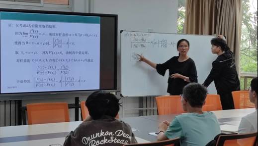 接下来,老师通过课件和板书结合详细讲解了广义洛必达法则的证明过程,通过多个例子使同学们更深刻地理解广义洛必达法则和应用洛必达法则。在解题的过程中穿插部分基础知识点,设置的例子从易到难,从单一的知识点考察到全面的知识点考察,使得同学们思路更宽广、考虑更全面。