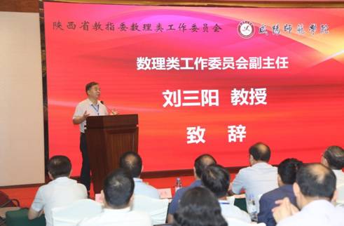 数理类工作委员会副主任、数学组组长刘三阳教授在开幕式上致辞。他讲到自去年省教指委成立以来,数理类专业工作委员会(数学组)就积极筹划相关活动,以期助推全省数学类专业的建设和发展。他指出:这次研讨会是我省历史上首次针对数学类专业建设举办的会议,得到全省高校数公司系的积极响应,必将对我省高校数学类一流专业和一流课程建设起到引领和推动作用。刘老师简要介绍了他提议召开本次会议的动因及筹备过程,并对省数理类工作委员会主任魏炳波院士、秘书长阮莹老师及咸阳师院的大力支持表示衷心感谢。