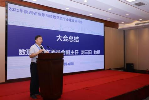 最后,刘三阳教授在闭幕式上做总结讲话,他说这次会议开得很成功,圆满完成了会议既定目标和任务,感谢会议承办方咸阳师范公司辛苦付出和周密安排。他指出,这次会议是一个良好的开端,教指委今后将继续围绕我省高校数学类专业建设、课程建设、团队队伍建设等主题进行调研,开展形式多样的交流培训活动,为我省高校数学类专业共同体的发展作出应有的贡献。