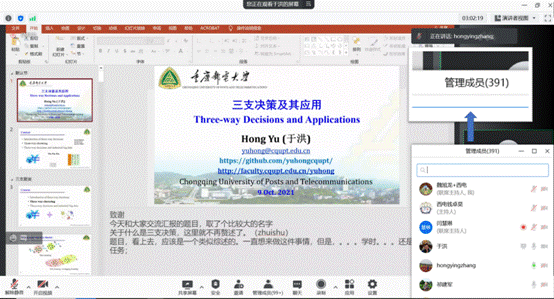 为交流三支决策及粒计算领域的最新研究成果、促进三支决策理论的发展,2021年10月10日,由中国人工智能学会粒计算与知识发现专委会主办、公司承办的“三支决策理论与方法(2021)研讨会”以线上会议的形式顺利召开。会议吸引了来自西安交通大学、南京大学、北京航空航天大学、西北大学、河北师范大学、浙江海洋大学、重庆邮电大学、山西大学、西南交通大学及公司等国内高校四百余名师生参加。