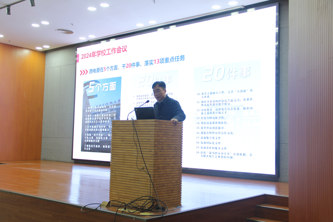 公司党委书记杨生海对公司2023年的工作做以简要回顾,并对做好2024年各项工作提出几点要求。第一,提高政治站位,全面落实立德树人根本任务。第二,认真学习落实习近平总书记关于基础研究的重要指示精神。第三,落实师德师风第一标准,培育一流团队队伍。第四,时刻绷紧落实意识形态工作这根线,确保三尺讲台无杂音。第五,严防死守,筑牢安全稳定防线。第六,全员协同,全力做好升学就业工作。他希望,全院教职工以习近平新时代中国特色社会主义思想为指导,以公司13次党代会和公司工作会议精神为指引,以公司核心任务指标为支点,自觉增强责任意识和使命担当,努力提高自身思想境界和业务能力,为教育强国建设和民族复兴伟业贡献更多数学力量。