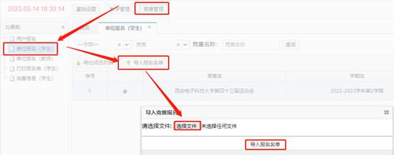 单击导入报名名单,如果过程被中断系统会给出日志文件,用户可以据此结合系统设置的报名限制调整报名数据,最后导入成功后即报名成功。