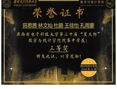 作为一名数学系的本科生,在大学期间,最开始听说并接触到的竞赛就是数学建模竞赛。大一,被同学带着参加了数学建模竞赛,虽然没有取得好的成绩,但让我打开了一个竞赛的大门。在之后的学习过程中,不断参加各类学科竞赛,如:数学竞赛、互联网+大赛、国创等项目。其中一部分取得了好成绩,有的比较遗憾,但是在这个不断学习新知识的过程中收获了知识、朋友和敢于迎接挑战面对难题的勇气。