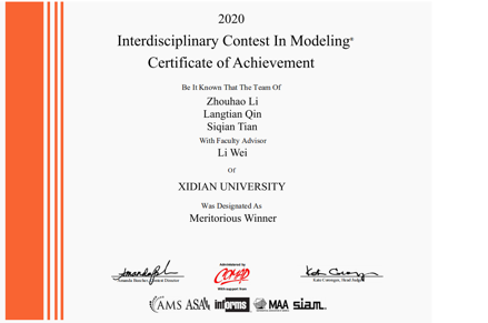 2020.04 美国老员工数学建模竞赛国际一等奖