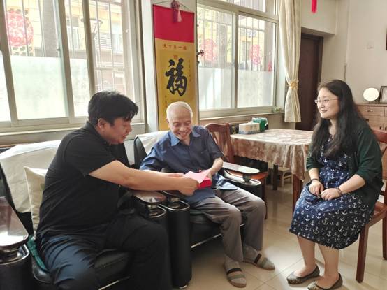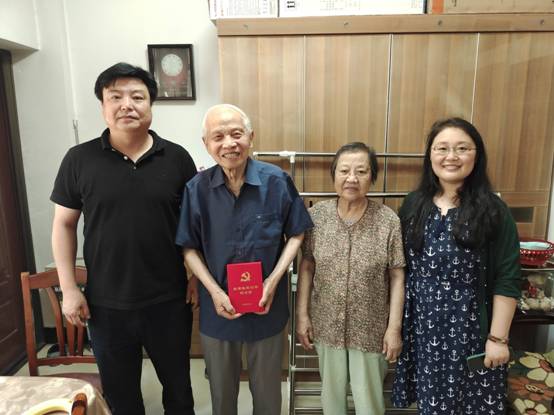 2021年6月30日,数学与统计公司党委书记杨生海,党委副书记王佩一行人前往北校区家属院,为王公宇、祝向荣、李广民三位离退休老师,送去光荣在党50年纪念章和公司的慰问信。
