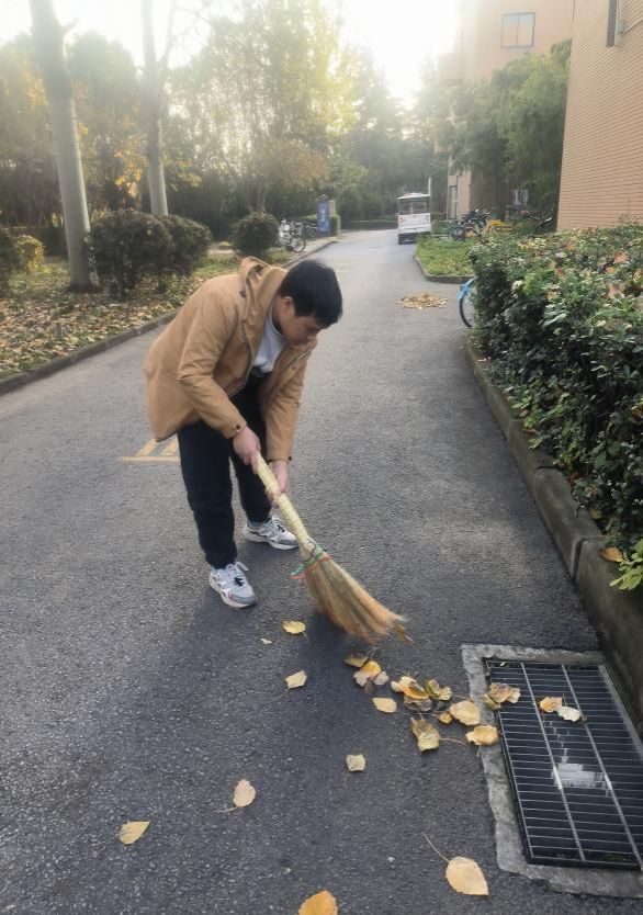 寒风乍起,校园的小径被落叶攻占,落叶无尽,层层叠叠,此次劳动实践教育活动内容是行政辅楼周围的落叶清扫。来到劳动工具领取处,同学们纷纷拿起事先准备好的笤帚、簸箕、耙子等工具,前往各自负责的区域。大家分工明确,有的负责清扫,有的负责清运,配合默契,展现了团队协作的力量,堆积的落叶在同学们的清扫下逐渐聚拢。经过一个多小时的努力,行政辅楼周围掉落的干枯树枝、落叶等垃圾被同学们清扫的干干净净。