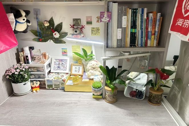 如果将宿舍视作研究生的第一个家,那么工位便是他们的第二个家。方寸之间,堆叠的文献见证着学术探索的深度,整齐的文具勾勒出科研攻坚的轨迹,精心布置的绿植与装饰更赋予空间独特的温度。23级硕士研究生任晓婉说,“每一寸空间都承载着对学术的热爱,这里的每一份陈设都是青春的注脚”。22级博士研究生黄安讲到,“看着亲手布置的绿植在阳光下舒展,一天的疲惫都化作前行的动力。”每个工位都成为主人个性与追求的延伸,书写着属于自己的奋斗诗篇。