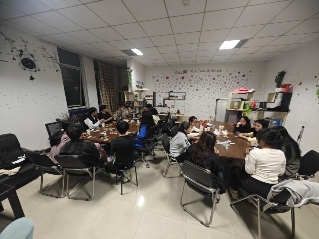 秋夜微凉,但活动现场却气氛热烈、笑语盈门。晚上六点,活动正式拉开帷幕,同学们在班委的引导下迅速融入轻松愉快的游戏氛围中。现场准备了多种类型的桌游,既有考验逻辑推理与语言表达的阵营类游戏,也有注重资源规划和策略博弈的经营类游戏,满足了不同兴趣同学的需求。