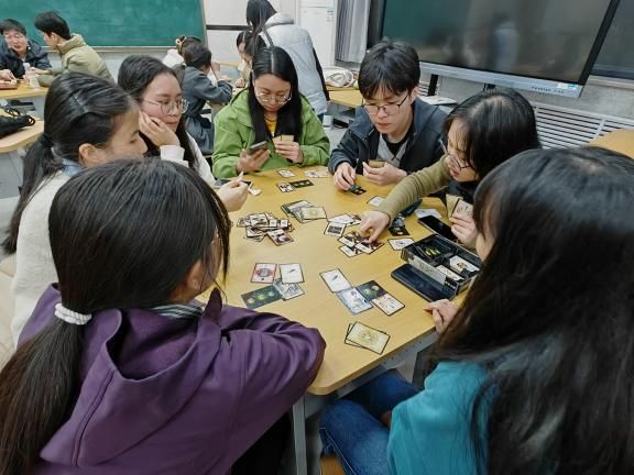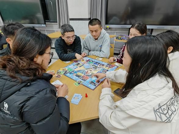 活动中,大家展现出了高度的热情。在象棋区域,一场场智慧的激烈较量正在上演。同学们两两对决,棋盘之上,将士们纵横驰骋。棋手们有的手托下巴陷入沉思,有的则果断落子。每一步棋都蕴含着他们对局势的精准判断,每一局棋赛都是智慧与策略的较量,同学们沉着冷静、积极思考,全力以赴。更是吸引了许多同学前来围观,大家共同思考棋局,讨论策略,同学之间的感情也在这一过程中得到加深。桌游区域则充满了欢乐与惊喜。玩家们围坐成一圈,全神贯注。现场气氛时而紧张刺激,时而又引起同学们阵阵惊呼与欢笑,在每一轮的发言环节,大家各抒己见,凭借逻辑推理和言语交锋,全力达成各自的目标。棋类比赛不只是一项智力运动,它还是一种全面的教育方式。此次活动,不仅为同学们提供了放松娱乐的契机,更在游戏过程中有效地锻炼了他们的思维能力、沟通技巧以及团队协作精神