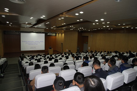 随后Victoria Gould教授作了《Studying mathematics, statistics, finance and actuarial science at The University of York》为主题的报告。Victoria Gould教授结合自己在约克多年的生活体会向同学们展现了约克郡独特的风景和丰富的历史文化。此外Victoria Gould教授重点介绍了此次联合培养项目的申请条件、专业方向及需要完成的学习任务等。报告最后,Victoria Gould教授对同学们有关出国学习的疑问一一解答并给出中肯的建议。在同学们热烈的掌声下,报告会圆满结束。