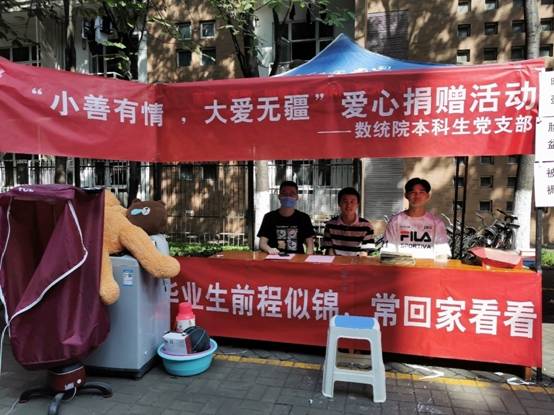 勿以善小而不为,捐助虽然是微小的,但是爱心是无价的。雨果有言“人生是花,而爱是花蜜。”数学不统计公司本科生党支部在感恩中共同播撒爱心,一起弘扬中华传统美德,授人玫瑰,手留余香,让我们一起,为爱加油!祝各位毕业生健康快乐,前途似锦!祝所有老人健康幸福,安享晚年。(通讯员:付媛媛)