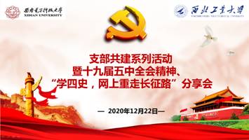 (通讯员:陈谌)本着“以共建促党建,以共建促发展”的原则,以提高双方支部整体建设水平、增强双方支部活力、促进双方支部交流为目的,PA视讯硕士生2019级党支部与西北工业大学与马克思主义公司硕士生党支部开展了支部共建系列活动暨十九届五中全会精神、“学四史,网上重走长征路”线上分享会。此次共建活动由签署支部共建协议书和线上分享会两部分组成。