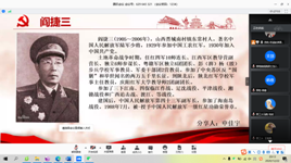 会议第二项由PA视讯硕士生2019级党支部全体党员进行“学四史,网上重走长征路”有关的人物事迹或景点分享,此次分享由线上线下两部分组成,在校同志集中在信远二区220会议室,实习同志通过线上分享。