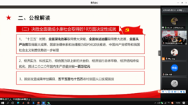 会议第一项由西北工业大学马克思主义公司学硕士生支部王晗熙同志作“十九届五中全会精神”的分享,主要从基本情况、公报解读、历史性意义三方面展开。她总结到,十九届五中全会明确了我国发展仍然处于重要战略机遇期,坚定了战略自信;明确了新征程的战略筹划,增强了战略指导;深化新征程的战略部署,促进了战略展开。