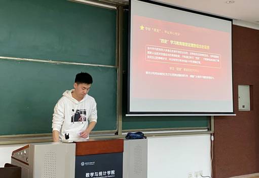 首先,由主持人陈畅带领大家对“四史”内容作了简要的回顾与学习,通过学习,同学们了解到党史是中国共产党的领导不断走向成熟的实践史,新中国史是中国共产党推进建设新中国的实践史,改革开放史是中国共产党推进社会主义制度自我完善和发展的实践史,以及中国共产党是引领世界社会主义发展的重要政治力量,通过学习,支部成员进一步认识到学好“四史”精髓,牢记初心使命的重要性,它是坚定党员理想信念的需要,是提升我们党性修养的需要,还是提高我们工作能力的需要。党员同学与发展对象仔细聆听“四史”内容,不仅将一些常识铭记于心,更在于通过学习“四史”中鉴古知今,学史明智,同学们表示,“四史” 内容各有侧重,但整体讲的就是中国共产党为人民谋幸福、为民族谋复兴、为世界谋大同的实践史,中国共产党的领导是“四史”的主线,学习“四史”,可以帮助大家进一步理清历史脉络,认清历史真实,听清时代脉动,厚植爱党爱国情怀。