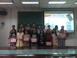 本次表彰大会由祝福同学主持,辅导员赵春霞老师引导。大会开幕前,首先播放了一段由李佳奇同学精心制作的视频,带领大家回顾了这一学年中数统院的各种难忘瞬间。接着,在张荣同学制作的PPT的导引下,颁奖仪式正式开始。本次大会依次表彰了2017-2018学年宣传大使、院级优秀员工干部、优秀员工、优秀宿舍、国创优秀参与者、“百人述百杰”优秀参与者及优秀寒假作业一系列奖项,共计36人及6个集体获奖。同学们怀着欣喜激动的心情上台领奖,并与颁奖书记留下了珍贵的合影。