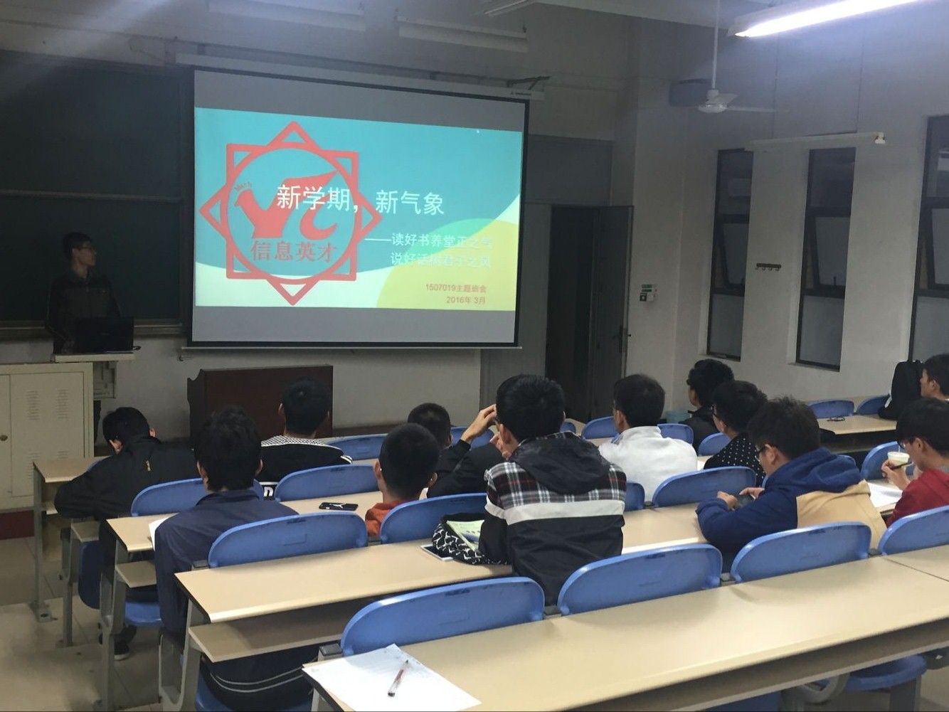 3月20日,数统院2015级英才班在B-507教室举办了“新学期,新气象”主体班会,全班同学积极响应参加班会。本次班会是新学期英才班的第一次班会,包括班委重新组建、班级板报设计、团支部活动安排、辅导员总结四个部分。