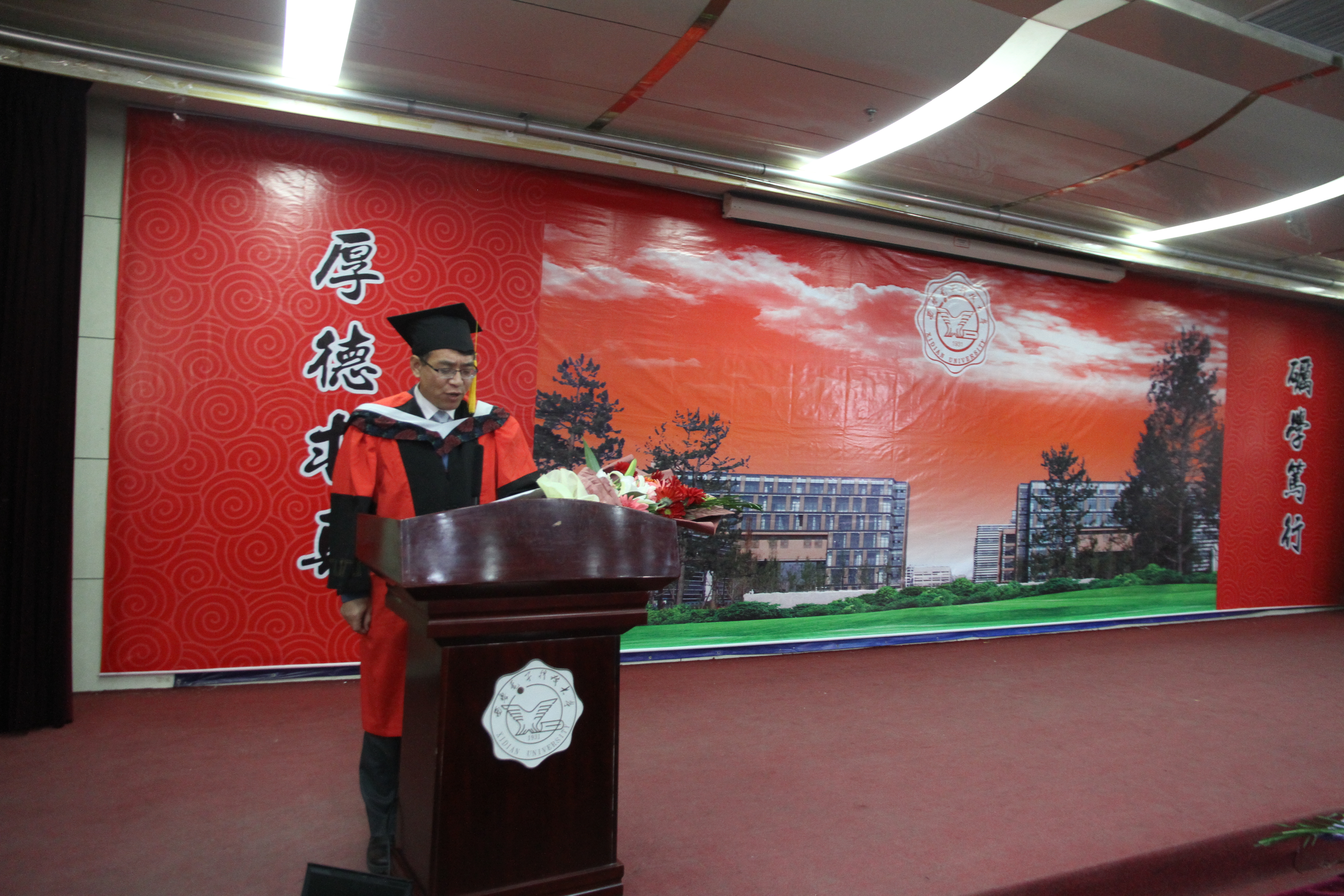 最后刘三阳经理讲话,再一次对毕业生顺利完成学业表示祝贺,刘经理说到:同学们学业顺利完成了,但学习不能结束;拿到了文凭,还要注意培养自身的文化;获得了学位,还要有品位;同学们已有一定的专业知识,更要有见识、有胆识,不忘常识,同时要学会赏识他人;最后祝福同学们身心健康、工作顺利、事业有成、前程似锦,做一个有智力又有智慧的人,并希望大家关注母校发展,常回来看看。
