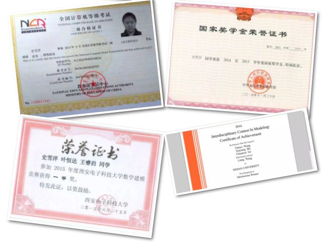 2016年01月:参加美国老员工数学建模竞赛,荣获国际一等奖;