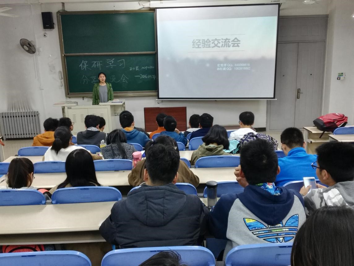 交流会上,13级学霸史雪洋和孙红霞首先进行自我介绍,其次从参加竞赛、竞赛获奖情况及学习获奖情况进行分享,接下来主要从课堂学习、课后学习以及大学期间时间安排三个方面进行经验交流。