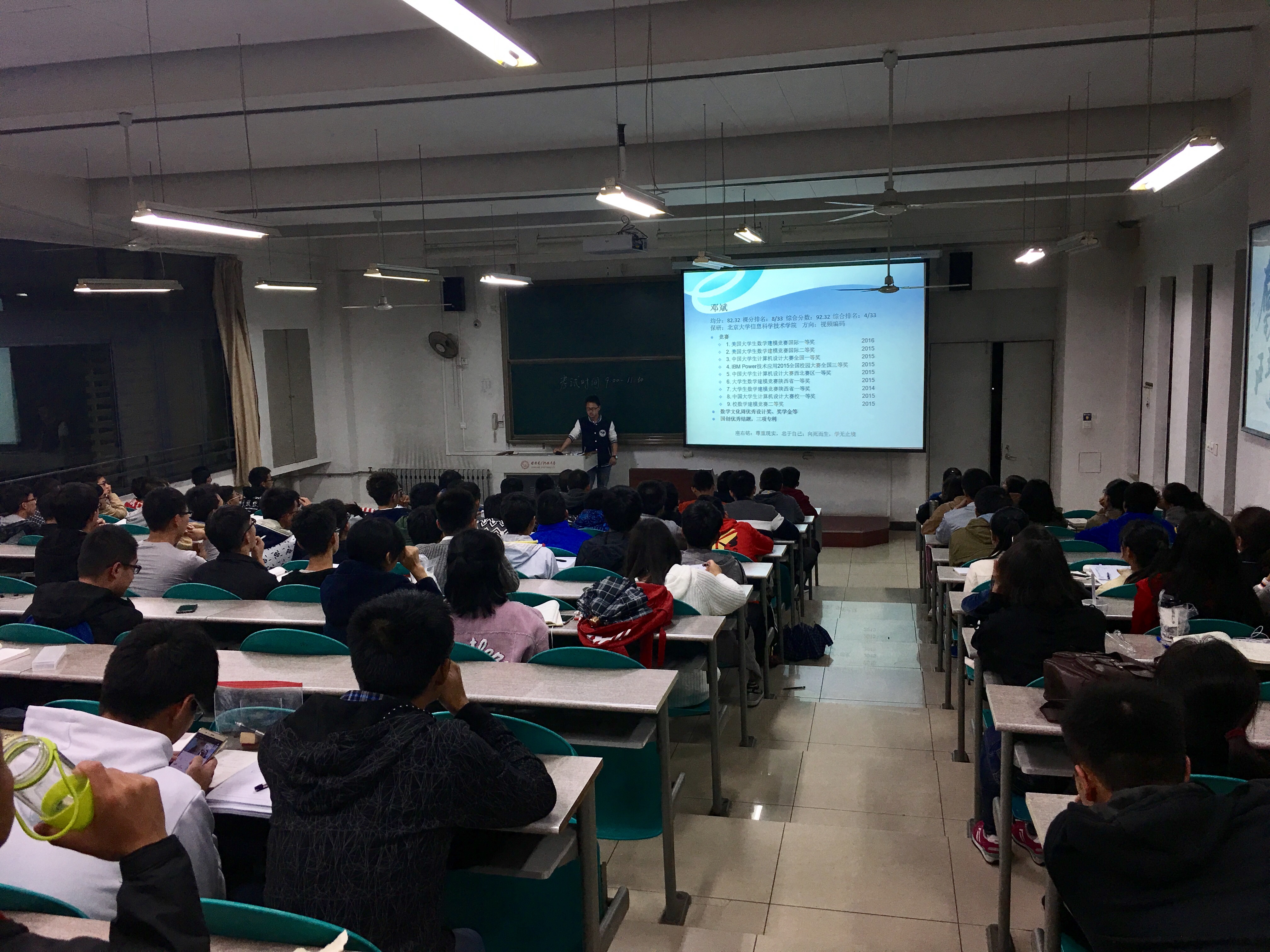 2016年10月26日晚6:00,为了让数统院大一新生了解老员工活,认识提升个人能力的重要性,由靳志伟老师组织的学长学姐学习交流会在B316举行。2013级成绩优异成功保研的学长学姐向数统院全体大一新生介绍了经验。
