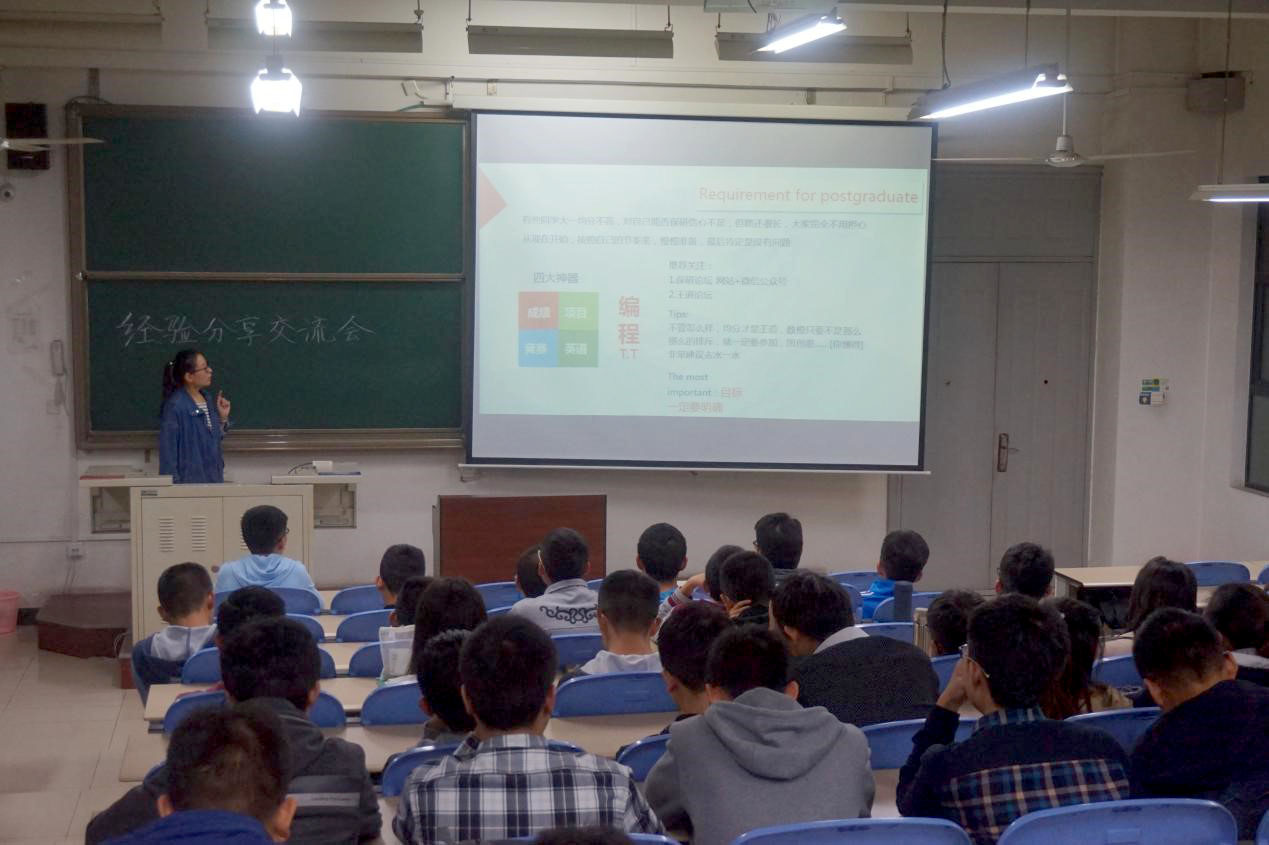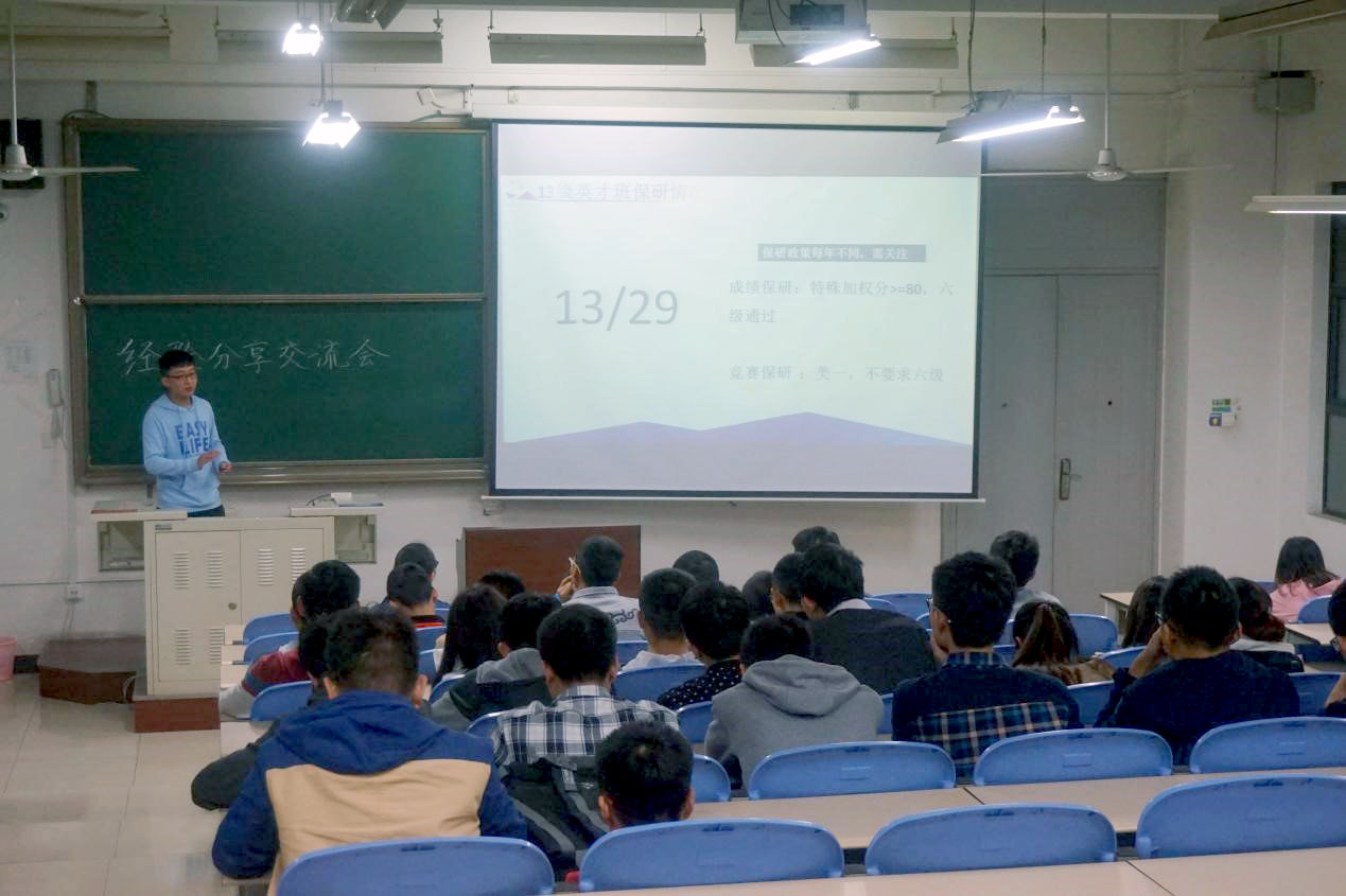16日晚上,数统公司大四优秀党员与低年级同学在B楼507教室进行了零距离交流,这次交流会以党员同学在成长成才以及保研过程中的感受和体会为主题。