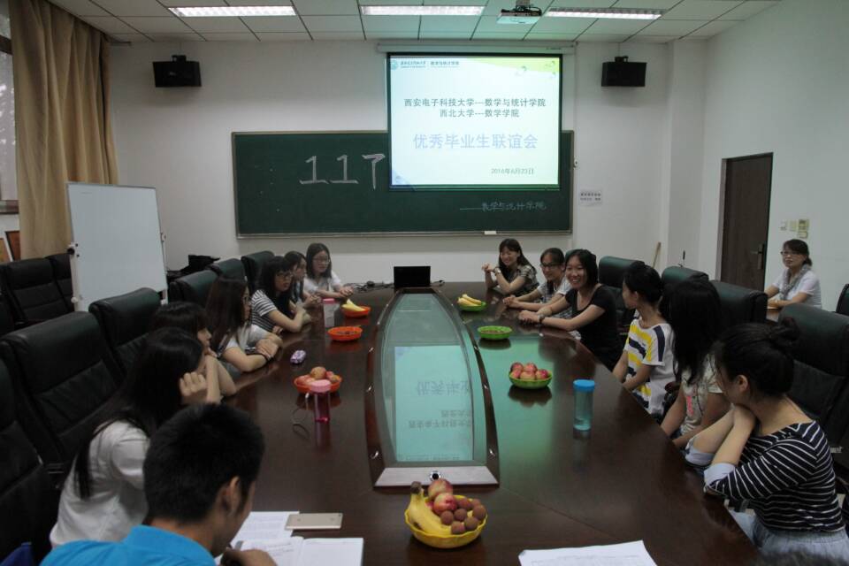 无巧不成书。都是数学公司,都是女生宿舍,都是宿舍全体成员上研,更巧的是,竟然宿舍号都是“117”。这些巧合促使比邻的两所高等学府----PA视讯平台和西北大学两个宿舍的姑娘们坐在了一起。