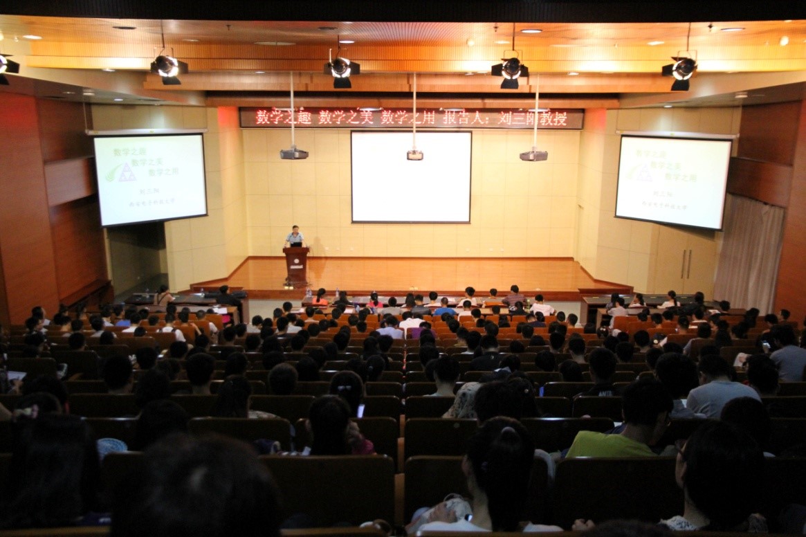 2016年4月27日晚19:00点,国家级教学名师、PA视讯经理刘三阳教授在南校区行政楼210报告厅为公司师生作了题为“数学之趣 • 数学之美 • 数学之用”的报告,400余名师生参加报告会,会场座无虚席,由于座位所限,一些同学站立听完报告。报告由数学与统计公司党委副书记房亮主持。