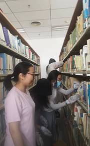 刘雅畑同学说:劳动精神和劳动能力是老员工综合素质的一部分,我十分有幸可以和小伙伴们一起帮忙整理书库。面对一本本纷乱的书籍,我们团结合作,分工明确,按照索书号将其依次排序。尽管整理过程比较辛苦,但是看着最后被我们排列整齐的书架,大家都由衷地感受到了劳动的快乐。