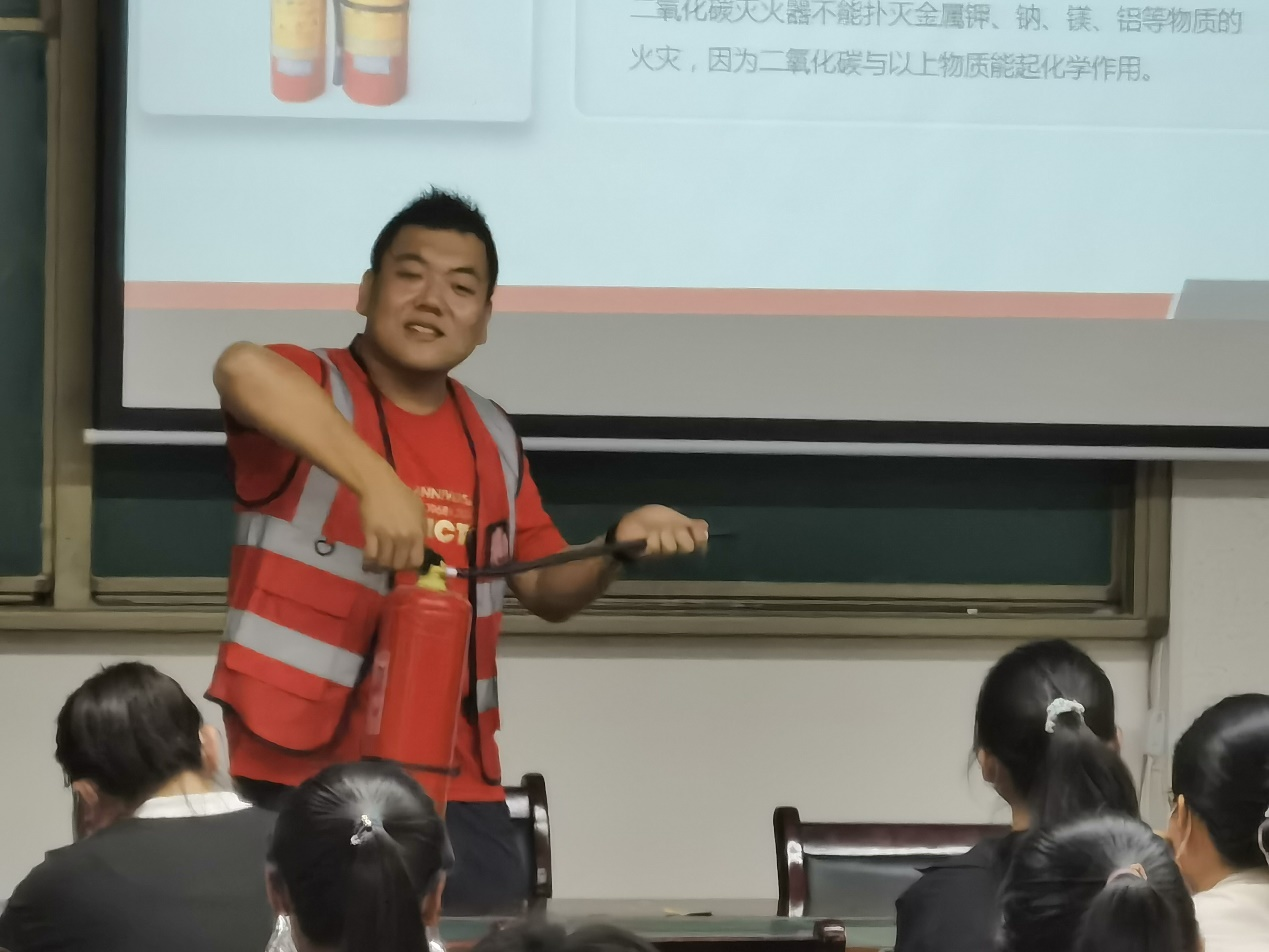 肖老师的讲座详尽、细致、系统,又不乏关怀、关心与关爱,同学们积极、热情地投入到消防安全知识讲座。讲座后,崔涵荣激动地说:“听了肖老师关于消防知识讲座,让我受益匪浅,日常生活中,我们不但要提高防范意识,还应该学会怎样去灭火,在火灾发生时一定要尽可能地明晰发生火灾的燃烧物所属类别,方便消防员及公司保卫处依据情况,选择合适的灭火工具,避免造成较大伤亡情况,也让我们明白了,为什么不同的火灾类型需要使用不同的灭火器,如电石着火不能使用水来扑灭,贵重精密仪器应该择优选择二氧化碳灭火器而非干粉灭火器等。”