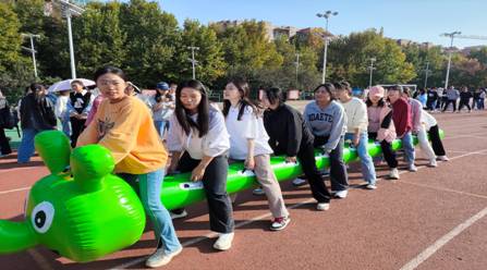 本届趣味运动会以“轻松愉悦、团队协作”为总基调,共设立三人制篮球联赛、60米蛇形跑、50米绑腿同行、拔河、毛毛虫竞速等多个趣味竞赛项目。这些团队项目集竞技与趣味与一体,不仅能够促进同学们之间交流和互动,还能够加强团队协作能力和培养团队凝聚力,让同学们在游戏中享受到运动的快乐。既有力量的角逐,又有智慧的较量,既展示个人竞技水平,又考验团队协作能力。