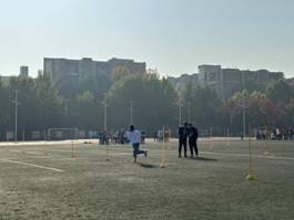 运动场上,最先开始的比赛是60米蛇形跑,30名队员分成两队接力完成蛇形跑,参赛人员跃跃欲试、充满活力。接下是考验团队默契的50米绑腿同行,参赛队员紧紧相拥在一起,迈着整齐的步伐,向终点前进。他们在赛场上不断穿梭,忙碌的身影中充斥着团队无形的默契,他们配合流畅,拼尽全力冲向终点,尽显数统学子们团结合作、锐意进取的行事风格。