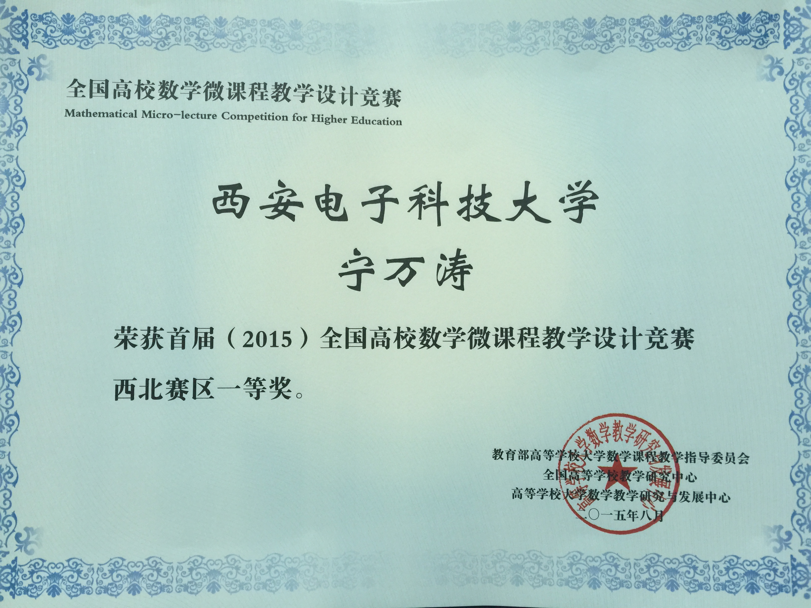 日前,首届全国高校数学微课程教学设计竞赛结果公布,PA视讯朱佑彬老师获得西北赛区特等奖(陕西赛区7项,西北赛区10项),宁万涛、吴婷老师获得一等奖,刘丹、冯晓慧老师获得二等奖。
