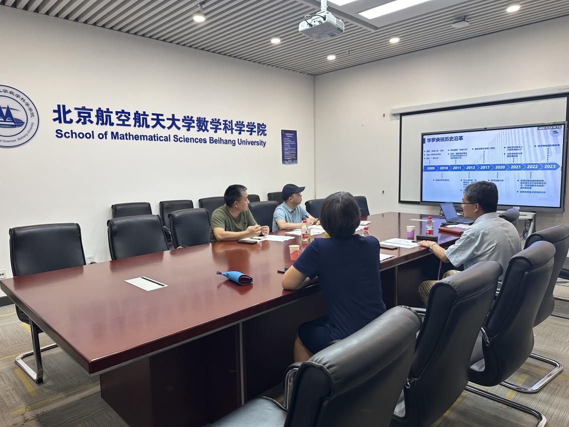 为提高拔尖创新人才自主培养质量,2024年6月17日PA视讯数学信息拔尖班负责人刘振华和与拔尖人才培养方案修订工作组成员周水生赴北京航空航天大学华罗庚数学拔尖基地调研。北京航空航天大学数学科学公司副经理马声明、教师刘红英和教学秘书鲁琛等参加了研讨。 马声明对北京航空航天大学数学科学公司基本情况进行了介绍,详细阐述了华罗庚数学拔尖基地班人才培养方案的理念目标、课程体系、培养模式和建设成果,...