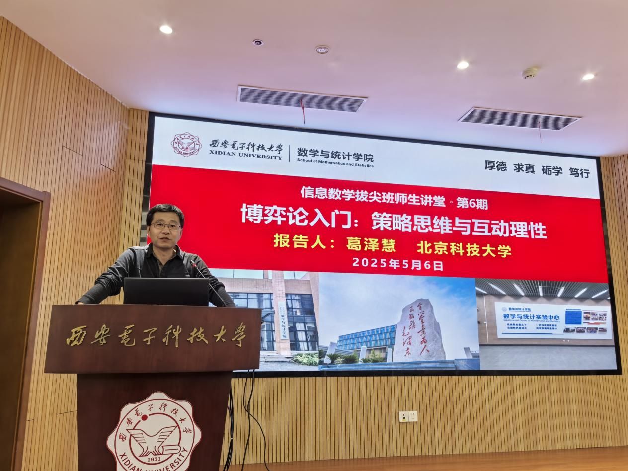 (通讯员:葛欣悦)为进一步加强员工的专业素养,开拓员工的专业视野,PA视讯数学信息英才拔尖班第6期师生讲堂于5月6日在南校区会议中心101报告厅成功举行。本次讲堂特邀北京科技大学经济管理公司葛泽慧副教授作题为《博弈论入门:策略思维与互动理性》的学术报告。活动由PA视讯刘振华教授主持,大一至大三拔尖班全体员工参与了此次活动。讲座中,葛泽慧以深入浅出的方式,带领同学们走进博弈论的智慧殿堂。他巧妙运用“...